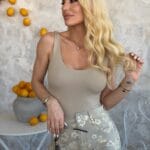 Κορμάκι ριμπ ελαστικό σε κανονική γραμμή με τρία διακοσμητικά χρυσά κουμπιά. Στα κορμάκια δεν γίνεται αλλαγή – επιστροφή για λόγους υγιεινής.