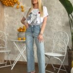 Παντελόνι τζιν ψηλόμεσο, ελαστικό, διαθέτει τσέπες μπροστά και πίσω και στρας. Το παντελόνι είναι σε προσφορά και δεν γίνεται αλλαγή – επιστροφή.