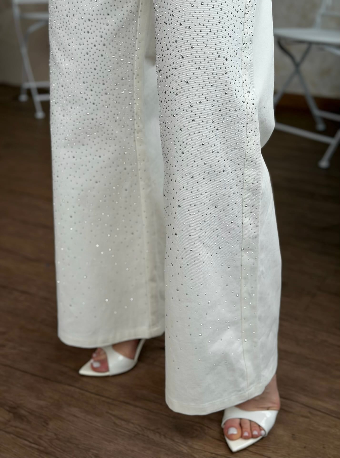 Παντελόνι Τζιν Λευκό με Στρας