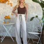 Παντελόνι ψηλόμεσο, ισόφαρδο με πολύ μικρή ελαστικότητα. Το παντελόνι είναι σε προσφορά και δεν γίνεται αλλαγή – επιστροφή.