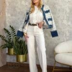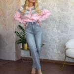 Παντελόνι τζιν, ψηλόμεσο εξώραφο, με τσέπες μπροστά και πίσω. Το παντελόνι είναι σε προσφορά και δεν γίνεται αλλαγή – επιστροφή.