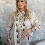 Πουκάμισο με λευκή ρίγα σε άνετη γραμμή, στα μανίκια διαθέτει διακοσμητική δαντέλα.