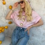 Πουκάμισο σε άνετη γραμμή, με κουμπάκια στρας, πέρλες και στρας στο γιακά, λαστιχάκι στο μανίκι που σουρώνει, τσέπη με πέτρες στρας. Το πουκάμισο είναι σε προσφορά και δεν γίνεται αλλαγή – επιστροφή.