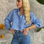 Πουκάμισο σε άνετη γραμμή, με κρυφά κουμπάκια στο μπροστινό μέρος και λάστιχο στο τελείωμα στα μανίκια.