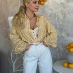 Πουκάμισο crop σε άνετη γραμμή, τσέπες μπροστά και κουμπάκια.