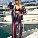 Σετ με γιλέκο με βάτες στους ώμους και διακοσμητική τσέπη, κλείνει σταυρωτά με κουμπιά, διαθέτει ζωνάκι και παντελόνι με λάστιχο στο πίσω μέρος και τσέπες, κλείνει με κουμπί και φερμουάρ. Το σετ είναι σε προσφορά και δεν γίνεται αλλαγή – επιστροφή.