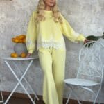 Σετ με γιλέκο ελαστικό με διακοσμητικά ασημί κουμπιά και σορτς με τσέπες μπροστά και πίσω, κλείνει με κουμπί και φερμουάρ. Το σετ είναι σε προσφορά και δεν γίνεται αλλαγή – επιστροφή.
