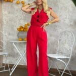 Σετ με πουκάμισο σε άνετη γραμμή, κλείνει με κουμπιά μπροστά και σορτς με λάστιχο στη μέση, διαθέτει τσέπες. Το σετ είναι σε προσφορά και δεν γίνεται αλλαγή – επιστροφή.