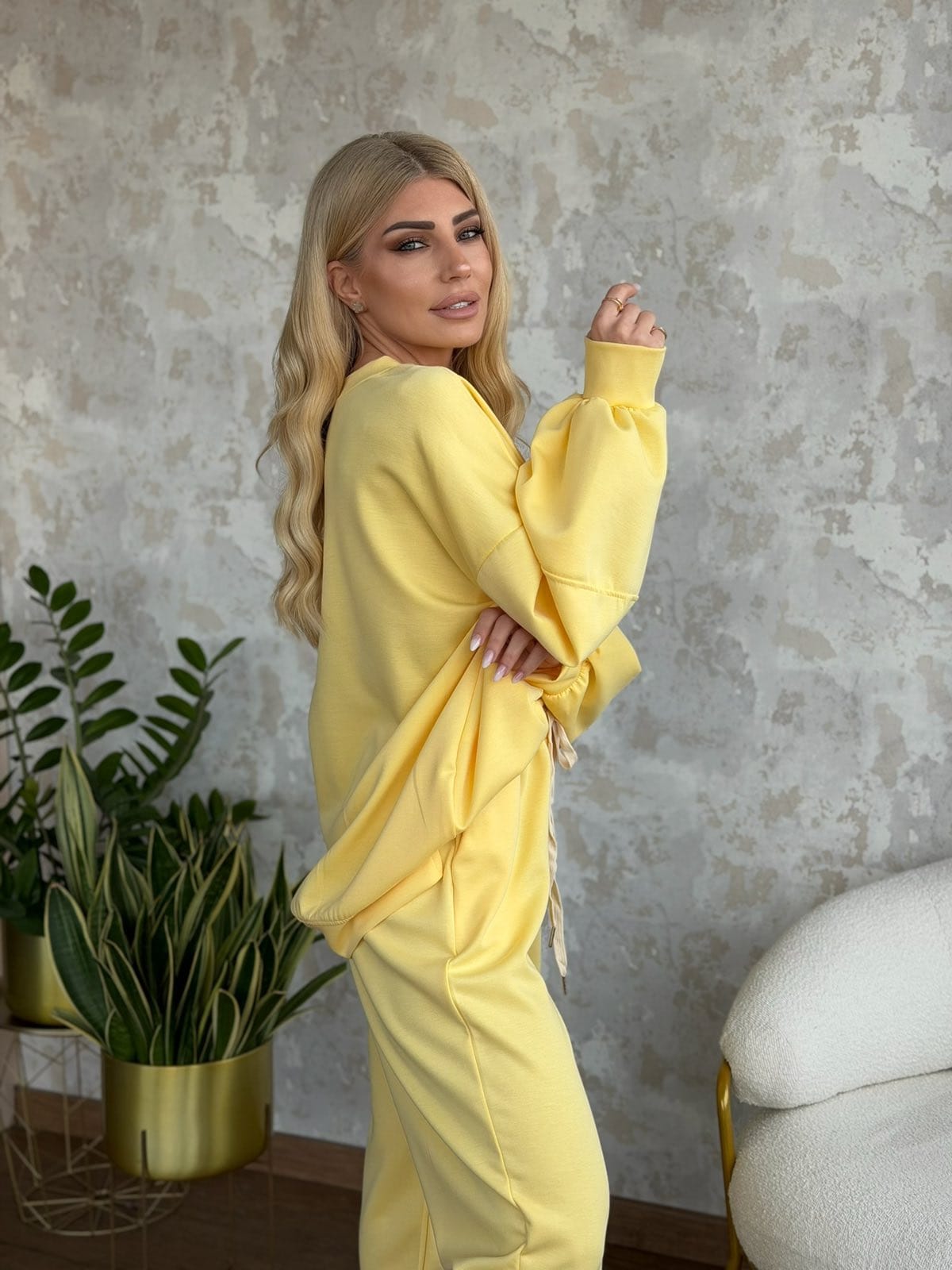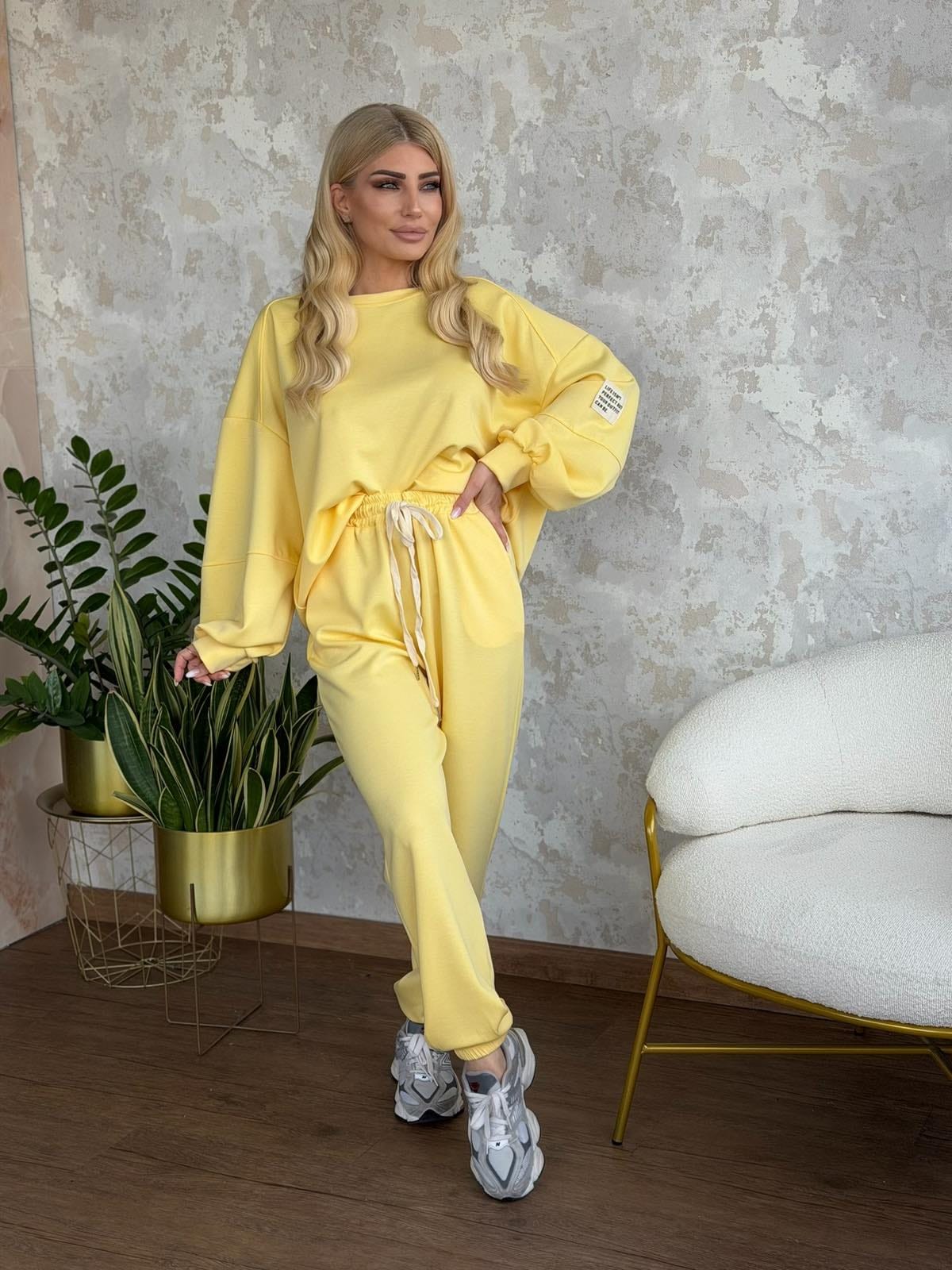 Σετ φόρμας με μπλούζα σε άνετη γραμμή και παντελόνι σε άνετη γραμμή, με λάστιχο και κορδόνι στη μέση και τσέπες, διαθέτει λάστιχο στο κάτω μέρος.