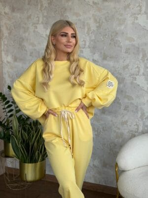 Σετ φόρμας με μπλούζα σε άνετη γραμμή με κουκούλα, με γαλάζιες γραμμές, στη μέση διαθέτει αυξομειώμενο λάστιχο και παντελόνι με λάστιχο και κορδόνι στη μέση, διαθέτει τσέπες. Το σετ είναι σε προσφορά και δεν γίνεται αλλαγή – επιστροφή.
