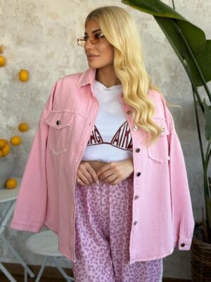 Τζάκετ τζιν crop, κλείνει με κουμπιά, διαθέτει τσέπες. Το τζάκετ είναι σε προσφορά και δεν γίνεται αλλαγή – επιστροφή.