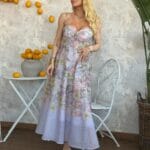 Φόρεμα μεσάτο, διαθέτει βάτες, κλείνει με κουμπί, στο τελείωμα έχει βολάν όπως και στα μανίκια, διαθέτει φόδρα εσωτερικά. Το φόρεμα είναι σε προσφορά και δεν γίνεται αλλαγή – επιστροφή.