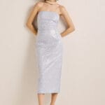Φόρεμα mini στράπλες, με βεραμάν λουλούδια και ασημοκλωστή, κλείνει με φερμουάρ στο πίσω μέρος, διαθέτει φόδρα εξαιρετικής ποιότητας