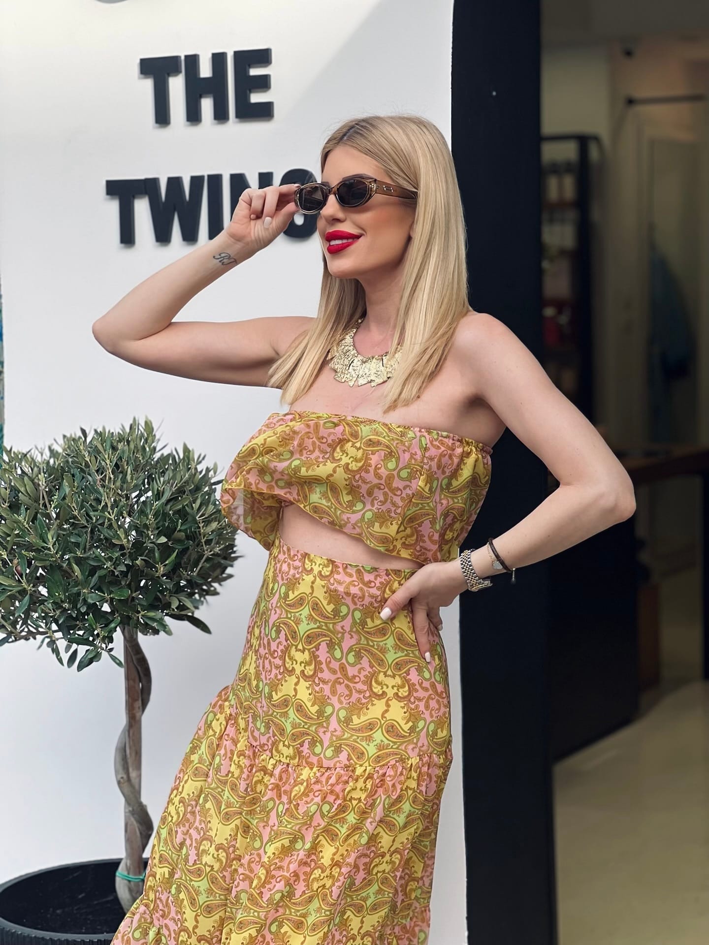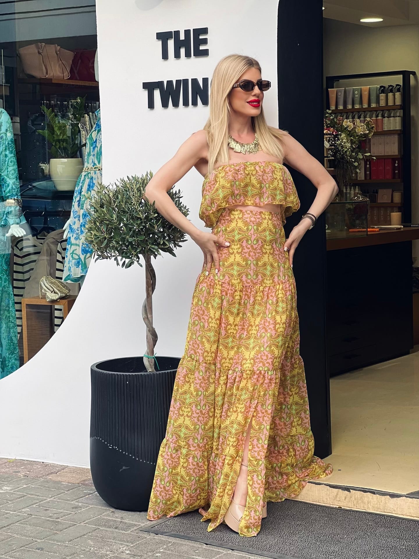 Σετ με εντυπωσιακό print με top στράπλες με λάστιχο στοπάνω μέρος και φούστα maxi με λάστιχο στη μέση και άνοιγμα στο μπροστινό μέρος. Ελληνίδα σχεδιάστρια IRAIDA ETHEREASTYLE.